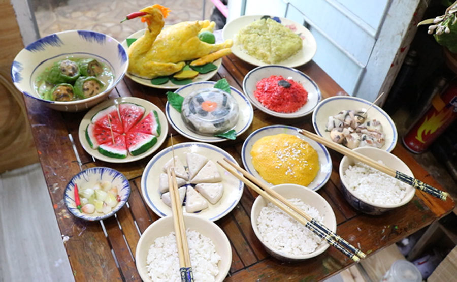 Độc đáo mâm cơm 3 miền ngày Tết làm từ đất sét