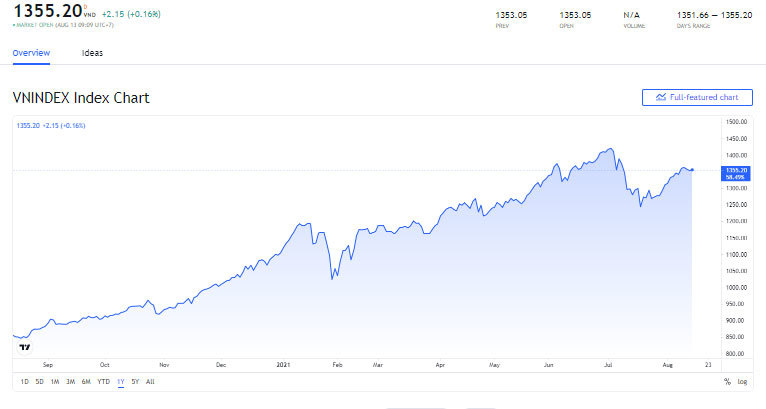 Chỉ số chứng khoán VN-Index ngày 13/8
