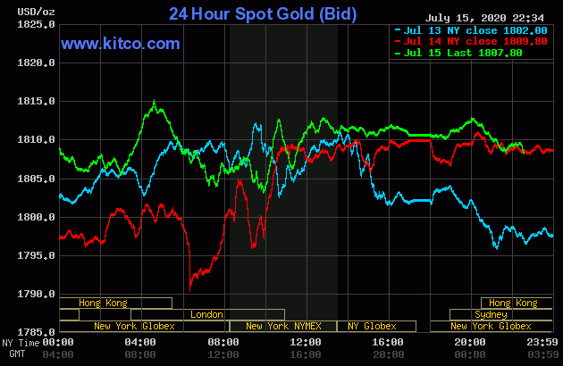 Cùng thời điểm, trên thị trường thế giới, giá vàng giao ngay trên Kitco hiện đang ở mức 1.807,8 USD/ounce, giảm nhẹ 2 USD/ounce, tương đương 0,11% giá trị so với chốt phiên trước.