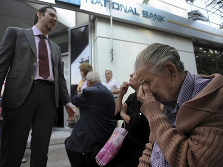 Người dân Hy Lạp xếp hàng chờ rút tiền tại các ATM hôm qua. Ảnh: Reuters |