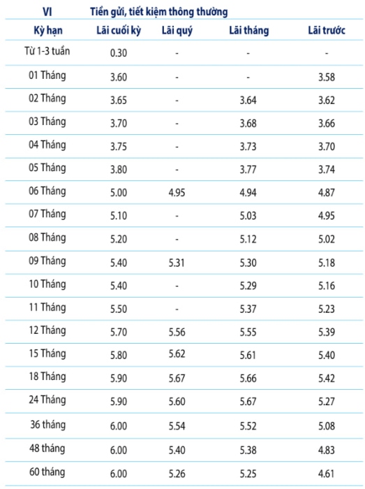 Kỳ hạn 9 tháng và 11 tháng được điều chỉnh mạnh nhất khi tăng thêm 0,45%/năm, lên lần lượt 5,5%/năm và 5,6%/năm. Trong khi kỳ hạn 10 tháng tăng 0,4%/năm, hiện niêm yết ở mức 5,5%/năm.