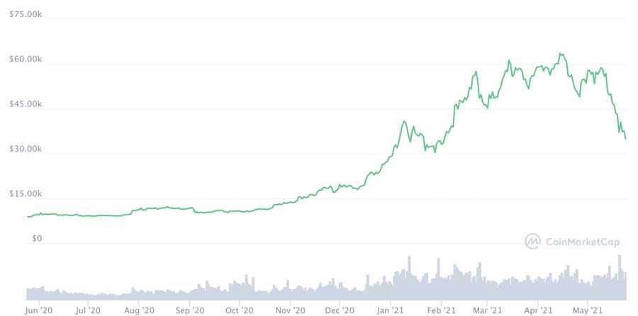 Dữ liệu từ trang Coinmarketcap.com cho thấy giá Bitcoin có lúc giảm còn hơn 31.000 USD trong đêm qua, từ ngưỡng hơn 38.000 USD vào buổi sáng. Ở mức đáy này, Bitcoin đã mất giá hơn một nửa so với đỉnh cao mọi thời đại gần 65.000 USD thiết lập hồi tháng 4.