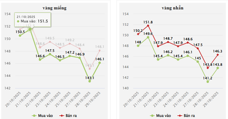 30/10/2025 08:46Thị trường vàng đảo chiều dữ dội: SJC và vàng nhẫn tăng hàng triệu đồng mỗi lượng