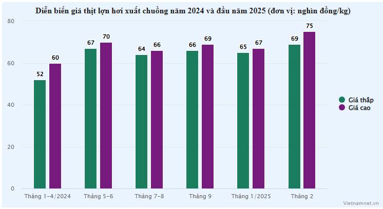 Sau đó, giá thịt lợn hơi giảm xuống còn 64.000-66.000 đồng/kg trong tháng 7, tháng 8. Đến tháng 9/2024 lại tăng trở lại 2.000-3.000 đồng/kg.