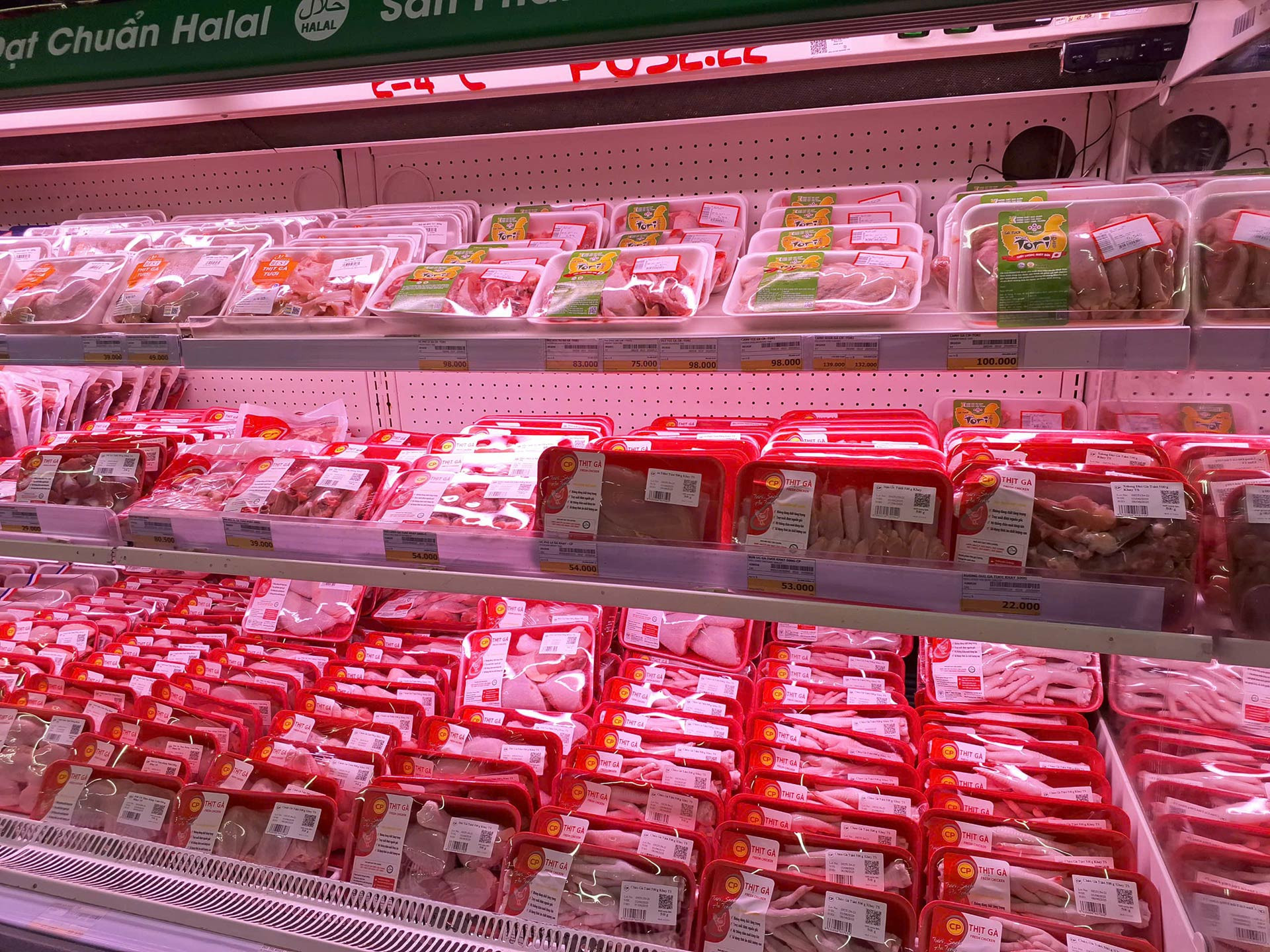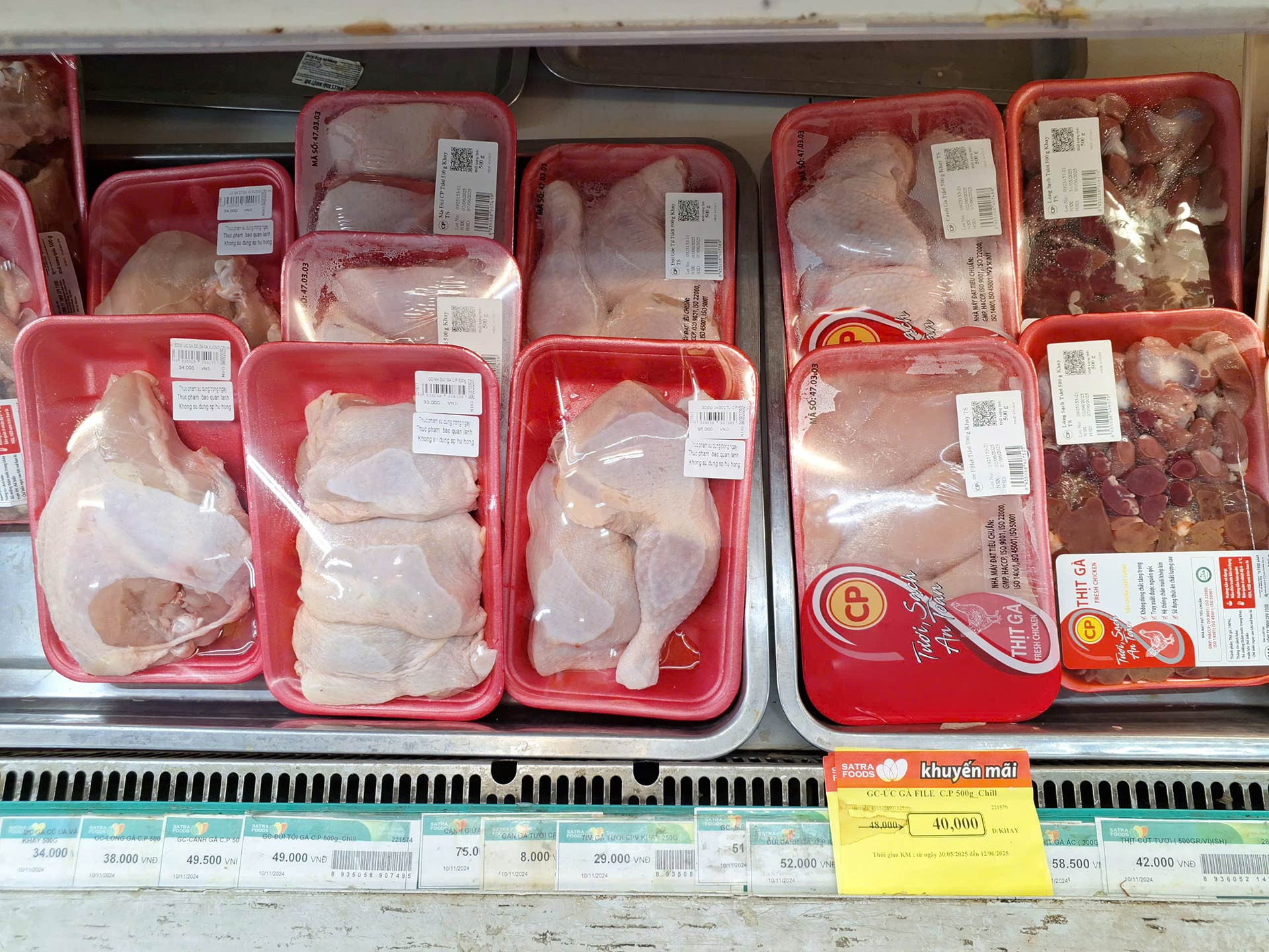 Tương tự, tại Satrafoods, Kingfoodmart cũng chỉ thấy bày bán sản phẩm thịt gà, thịt vịt mang thương hiệu C.P.