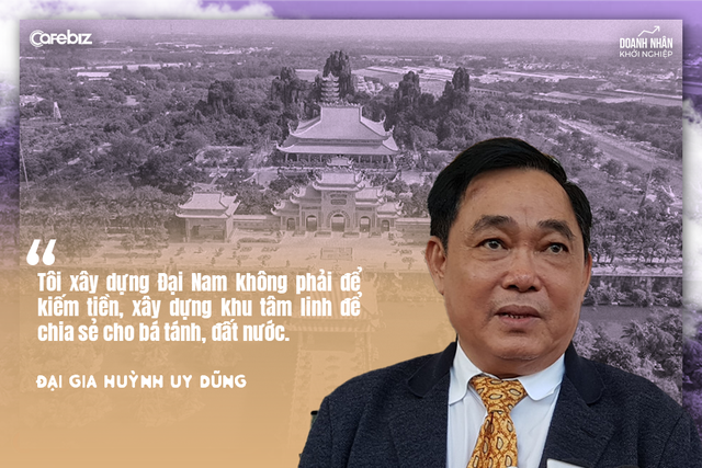 Ông nói: "Tôi xây dựng Đại Nam không phải để kiếm tiền, xây dựng khu tâm linh để chia sẻ cho bá tánh, đất nước. Nhìn xa một tý về quy hoạch 20 năm nữa cỡ 2030 để có một mảnh đất lớn như này để phục vụ cho văn hóa thể thao dịch vụ rất khó."