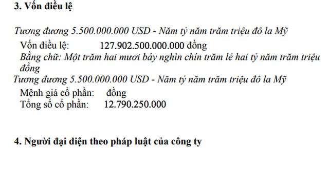 Đến tháng 6-2019, công ty này tăng mạnh vốn điều lệ lên 127.902,5 tỉ đồng, tương đương 5,5 tỉ USD. Trong đó, một cổ đông nước ngoài là David Aristole Phan (quốc tịch Mỹ) góp tới 51.161 tỉ đồng (tương đương 2,2 tỉ USD), chiếm 40% vốn điều lệ.