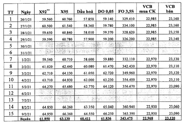 Cụ thể, trong kỳ điều hành giá lần này trùng vào kỳ nghỉ lễ Tết Nguyên đán 2021, liên Bộ quyết định giữ nguyên giá bán lẻ các mặt hàng xăng dầu trong nước. Để giảm áp lực cho các doanh nghiệp kinh doanh, liên Bộ tiến hành điều chỉnh lại mức trích lập Quỹ bình giá xăng dầu.