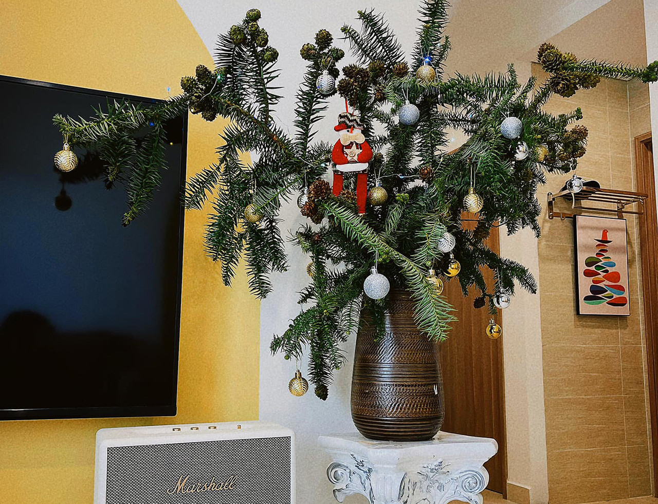 Khách chuộng nhất loại thông tươi khoảng 1,5m do kích thước nhỏ gọn, dễ trang trí. Ngoài cây, khách hàng phải mua thêm chân đế, với giá từ 750.000-950.000 đồng/chiếc và bộ phụ kiện trang trí.