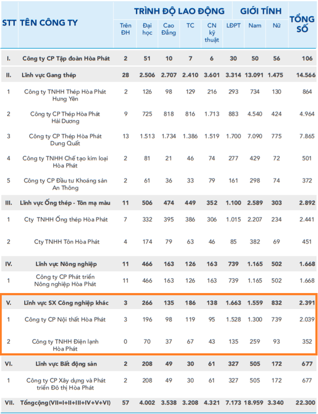 Tuy nhiên xét về cơ cấu, ngành nội thất chỉ chiếm khoản 2% tỷ trọng doanh thu của Tập đoàn. Trong khi dùng tới hơn 2.000 nhân sự, số này ngang ngửa với mảng ống thép và hơn nhiều so với kinh doanh nông nghiệp.
