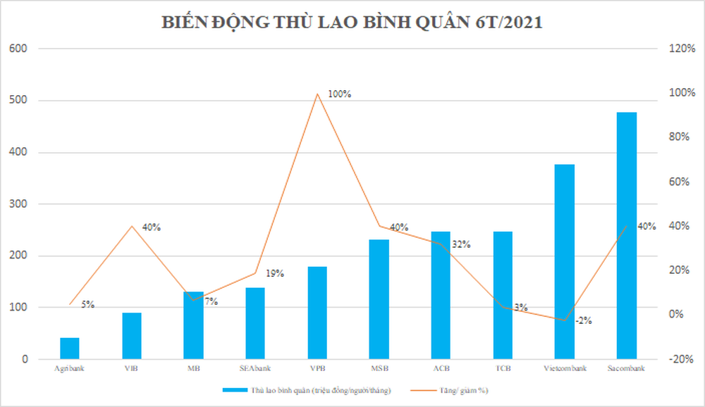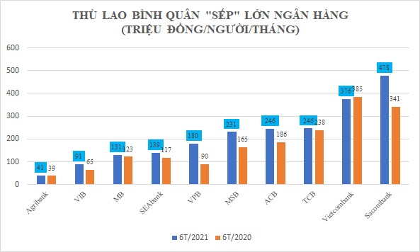 Tại bốn ngân hàng tư nhân top đầu (Techcombank, VPBank, ACB và MB), dữ liệu tại báo cáo cho thấy có sự khác biệt lớn về thù lao bình quân của các "ông chủ".