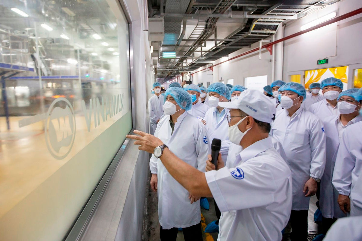 Chính phủ xác định “chống dịch như chống giặc”, Thủ tướng ghi nhận Vinamilk đã phát huy tốt tinh thần “vừa sản xuất, vừa chiến đấu”, quyết tâm không để ngừng trệ sản xuất, góp phần cùng cả nước thực hiện tốt mục tiêu kép. Những giải pháp và nỗ lực của Vinamilk nhằm bảo vệ sức khỏe, đảm bảo quyền lợi và nâng cao đời sống của người lao động cũng được Thủ tướng hoan nghênh, nhất là trong giai đoạn dịch bệnh. Thủ tướng nhấn mạnh, thực hiện mục tiêu kép là nhiệm vụ khó nhưng cần phải thực hiện; phải chống được dịch để thúc đẩy sản xuất kinh doanh; sản xuất kinh doanh mới có nguồn lực để chống dịch tốt hơn.