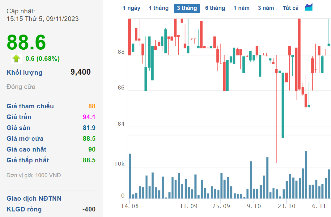 Kết phiên giao dịch ngày 9/11, cổ phiếu NCT đạt 88.600 đồng/cp.
