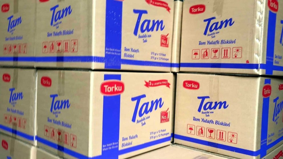 Tại hiện trường, lực lượng chức năng ghi nhận hơn 3 tấn bánh quy yến mạch nhãn hiệu Torku, trên bao bì có ghi nguồn gốc xuất xứ từ Thổ Nhĩ Kỳ, đã hết hạn sử dụng từ tháng 2/2020 nhưng đang được công nhân của công ty Minh Quang "phù phép” gia hạn sử dụng bằng máy dập date có sẵn.