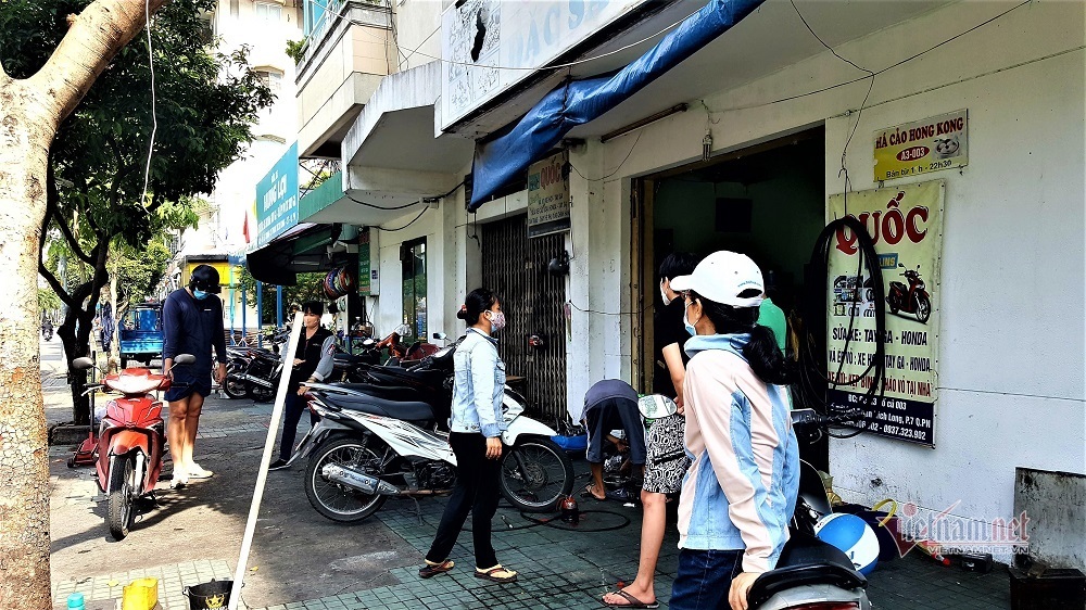 Tuyến phố Bùi Hữu Nghĩa (quận Bình Thạnh) vốn nổi tiếng là tuyến phố chuyên mua bán phụ tùng, sửa chữa xe, các tiệm sửa xe đều có đông khách từ sớm. Ông Huỳnh Tài Duyên (quận Bình Thạnh) cho biết, xe máy để lâu trong nhà không đi nên khó nổ máy, sáng nay ông phải dắt bộ ra tiệm để kích ắc quy và thay luôn nhớt xe lâu ngày.
