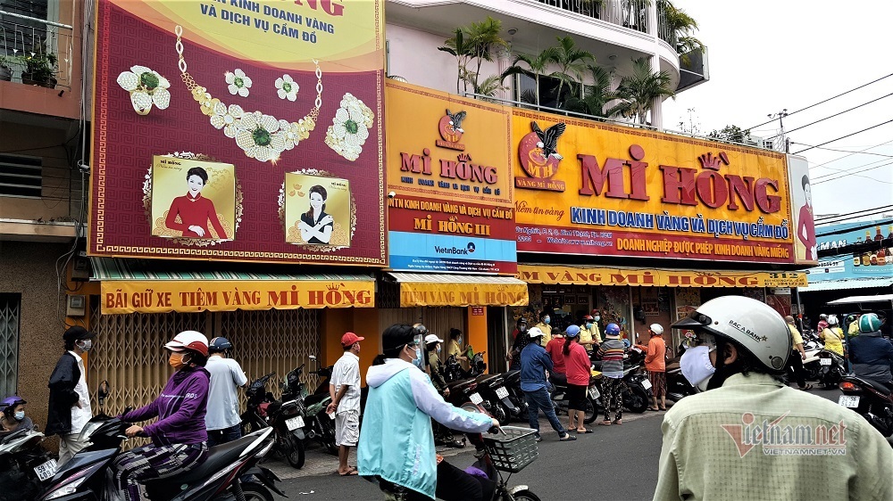 Đặc biệt, trong sáng đầu tiên "bình thường mới", các tiệm vàng là điểm tập trung khá đông người. 8h sáng, hàng dài người xếp hàng trước tiệm vàng Mi Hồng (đường Bùi Hữu Nghĩa - quận Bình Thạnh) để vào giao dịch. Tiệm vàng Kim Thành Phát (đường Vũ Tùng - quận Bình Thạnh) gần đó cũng trong tình trạng đông.