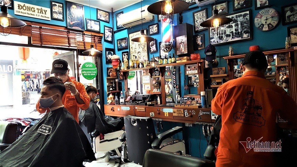 Anh Nguyễn Hoài Thanh, chủ hệ thống cắt tóc Đông Tây Barber Shop cho biết, các tiệm trong hệ thống chỉ làm việc đạt khoảng 20% công suất do chưa đủ thợ. Anh mở lại để máy móc, thiết bị điện lâu ngày không bị hỏng, tiệm được dọn dẹp sạch sẽ.
