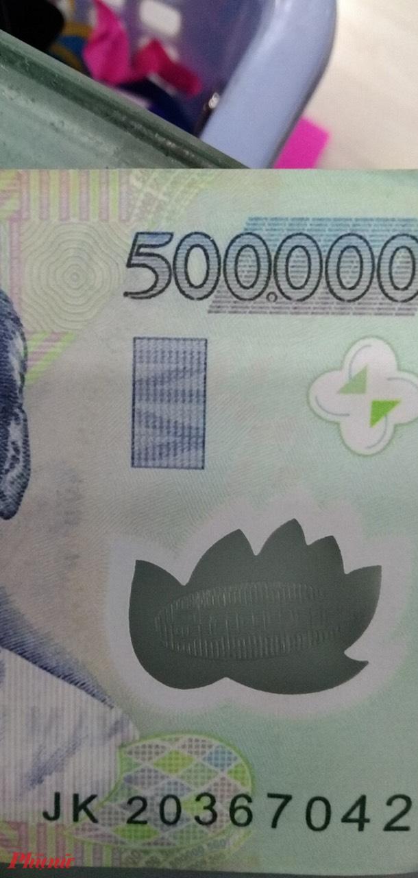 Chị Kim Oanh - nhân viên Cửa hàng Miniso (Trung tâm thương mại Crescent Mall, quận 7, TPHCM) cho biết, mới đây chị ra ngân hàng nộp tiền doanh thu trong ngày về công ty. Khi kiểm đếm, một tờ tiền 500.000 đồng văng ra khỏi máy đếm tiền. Thấy kích thước tờ tiền dài hơn so các tờ tiền còn lại, nhân viên ngân hàng dùng đèn soi và dò số seri thì phát hiện tờ tiền giả.