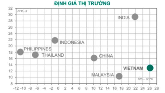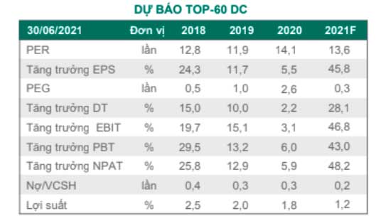 Tuy nhiên, Dragon Capital vẫn kỳ vọng lợi nhuận TOP 60 tăng trưởng 46% trong năm 2021, chủ yếu dựa vào các doanh nghiệp nhóm ngân hàng, bất động sản và thép. Nếu mức tăng trưởng cả năm chỉ đạt 35%, PE 2021 sẽ đạt 14,1 khi Vn-Index ở mức 1350 điểm. Đây vẫn là mức hấp dẫn so với các thị trường trong khu vực, tuy rằng không hẳn là mức thấp so với trung bình các năm trước của Việt Nam.