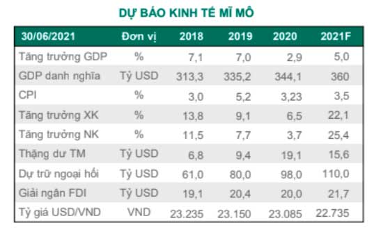 Về kinh tế vĩ mô, hoạt động kinh tế trong nước có dấu hiệu chậm lại trong tháng 6 khi Việt Nam bắt đầu áp dụng giãn cách xã hội tại nhiều tỉnh thành lớn thể hiện qua mức độ di chuyển giảm 40% so với cùng kỳ. Ngành dịch vụ và bán lẻ chịu ảnh hưởng lớn khi tổng số hành khách vận chuyển và doanh số bán lẻ giảm lần lượt là 13% và 2% trong tháng 6.