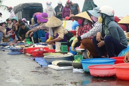 Tại chợ cá xã Lộc Vĩnh (huyện Phú Lộc, tỉnh Thừa Thiên - Huế), sau khi ngư dân phát hiện cá chết trên vùng biển, tình trạng ế ẩm bắt đầu diễn ra từ chiều 20/4. Khu chợ này có khoảng 50 hộ bán cá hiện chỉ còn rải rác vài hộ kinh doanh. |