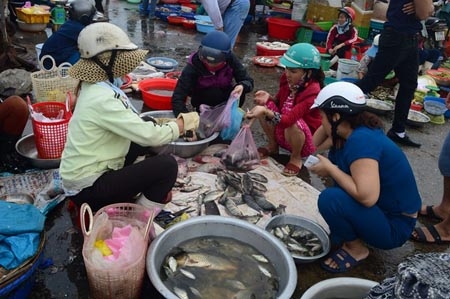 Thông tin về tình trạng cá chết ven biển dọc các tỉnh Quảng Bình, Quảng Trị khiến nhu cầu tiêu thụ yếu đi. Tiểu thương ở các chợ ngồi thẫn thờ nhìn cá ế chất đống.