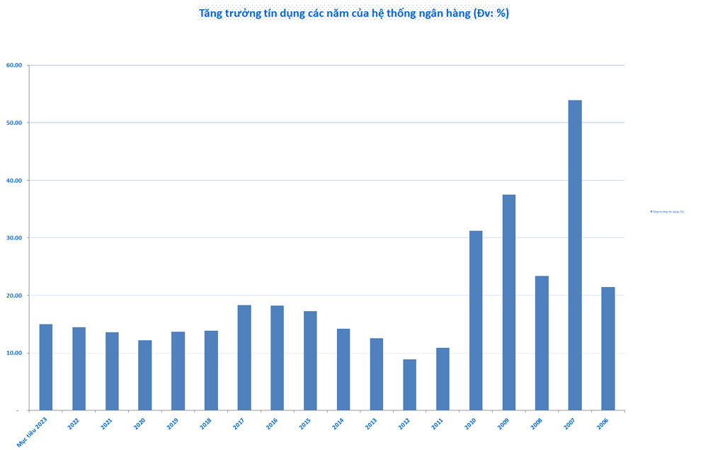 Trong 10 năm qua tăng trưởng tín dụng chung toàn hệ thống ngân hàng đã hạ nhiệt so với thập kỷ trước đó, chỉ quanh ngưỡng 14%/năm giai đoạn 2012-2021, thay vì mức 30%/năm giai đoạn 2001-2010.
