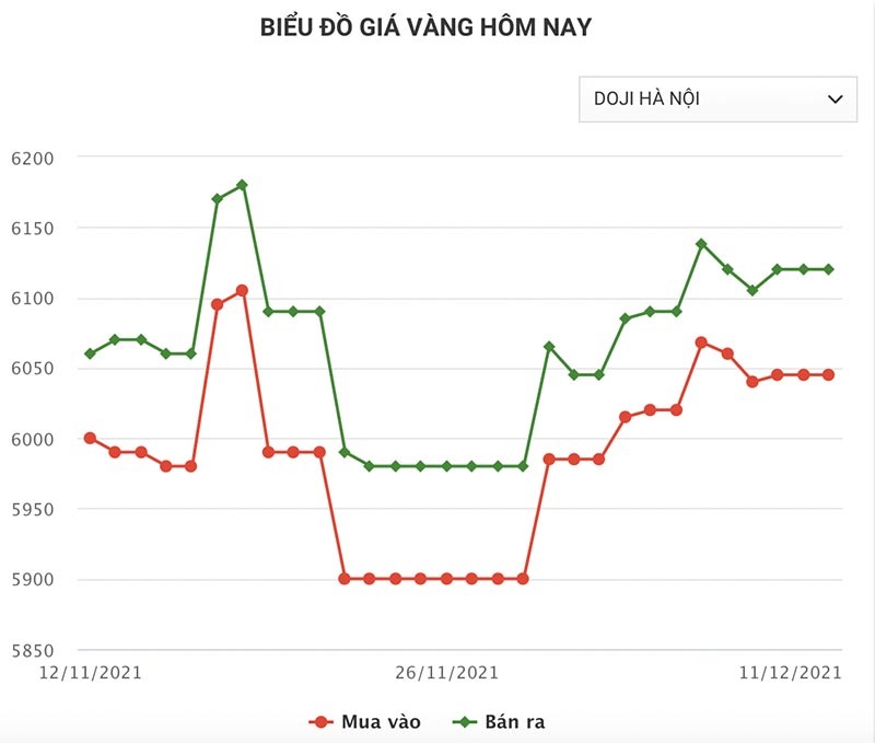 Giá vàng tiếp tục tăng trong bối cảnh các kênh đầu tư khác có nhiều biến động bất thường khiến nhiều nhà đầu tư lo ngại. Kết thúc phiên giao dịch ngày 11/12, giá vàng miếng 9999 trong nước được Tập Đoàn Vàng bạc đá quý Doji ở mức 60,6 triệu đồng/lượng (mua vào) và 61,35 triệu đồng/lượng (bán ra) tại Hà Nội và 60,7 triệu đồng/lượng (mua vào) và 61,4 triệu đồng/lượng (bán ra) tại TP.HCM.
