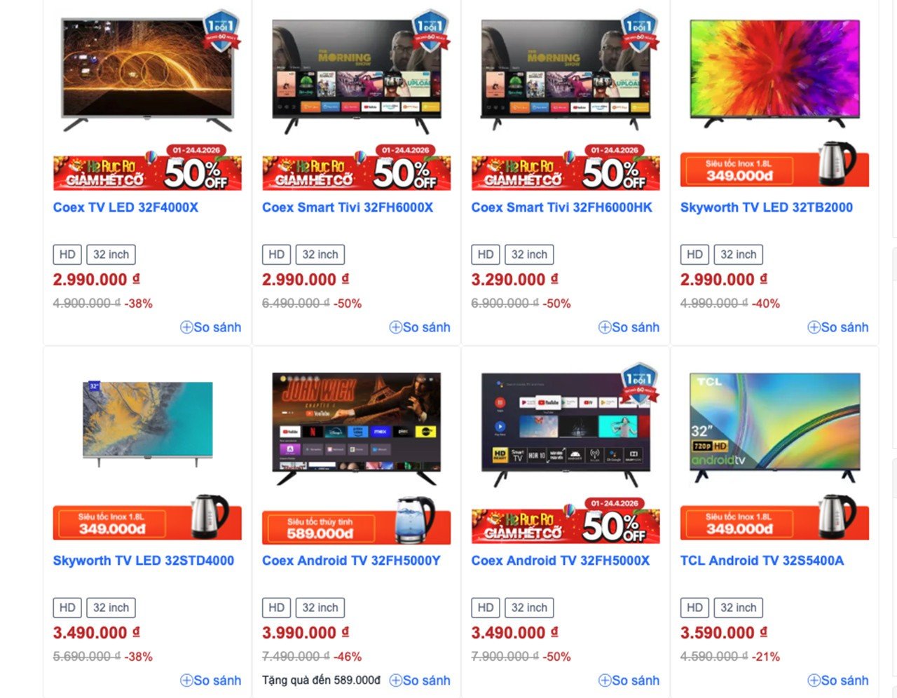 Với khoảng 3 triệu đồng, người dùng có thể lựa chọn các mẫu tivi cơ bản từ Coex hoặc Skyworth, chủ yếu phục vụ nhu cầu xem truyền hình truyền thống với thiết kế đơn giản.