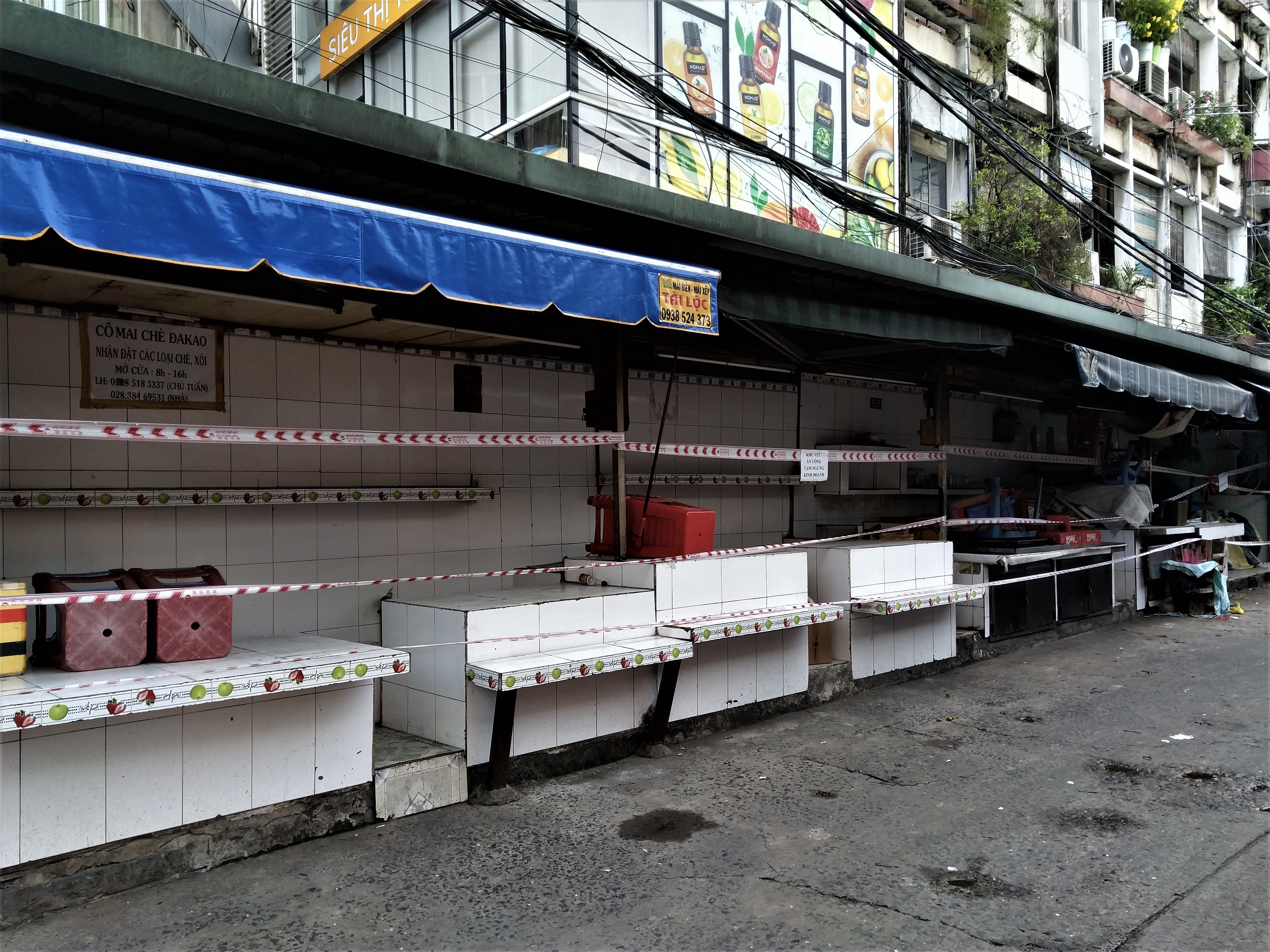 Đối với các chợ truyền thống, chợ tại khu vực quận Bình Thạnh, quận 1, quận Phú Nhuận đều trong trạng thái “im lìm”. Các tiệm tạp hóa, sạp cóc ở khu vực xung quanh các chợ này cũng ngừng hoạt động theo.