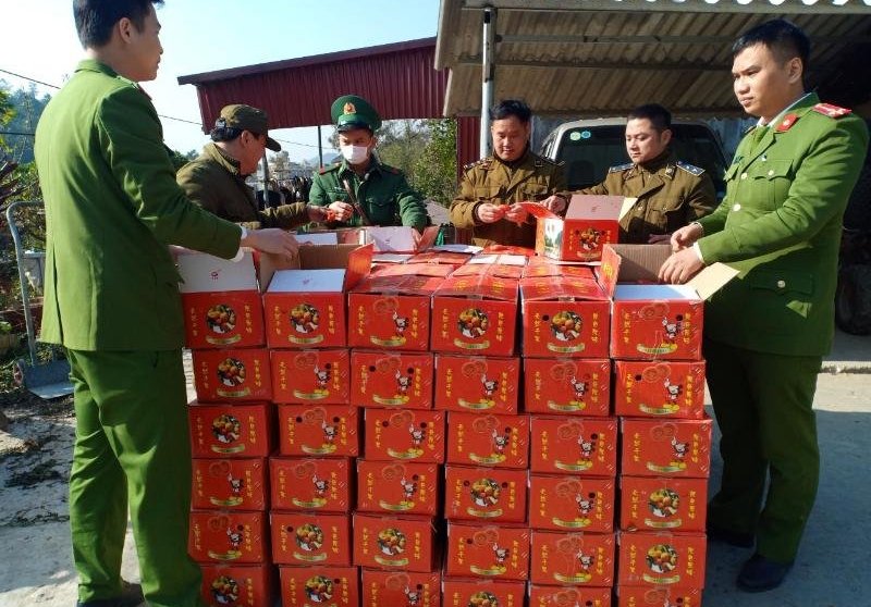 Khi phát hiện tổ công tác tiến hành bắt giữ các đối tượng đã bỏ chạy không đến nhận hàng, tại điểm tập kết Đoàn kiểm tra phát hiện có 119 hộp bìa cát tông màu đỏ ngoài vỏ họp có in chữ Trung Quốc kiểm tra thực tế bên hộp có chứa mặt hàng Hồng quả sấy dẻo có tổng trọng lượng là 1.190 kg, trị giá trên 71 triệu đồng.