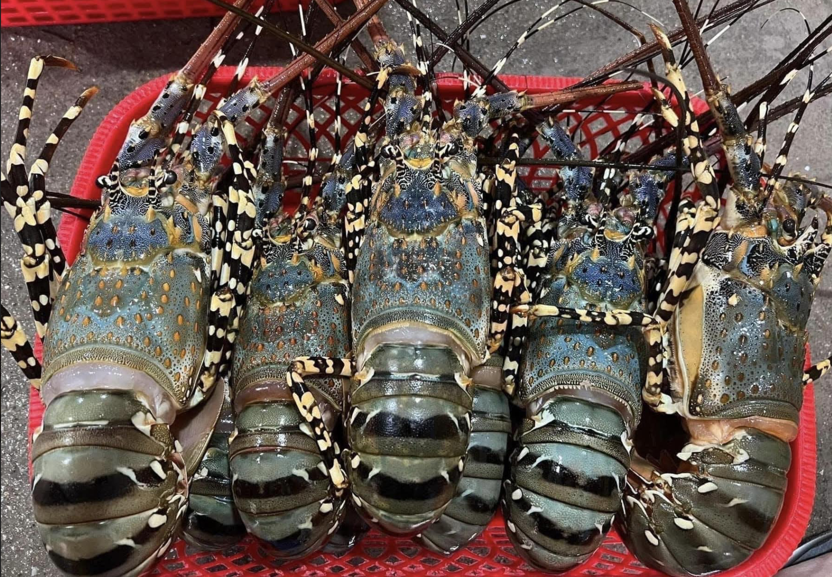 Thế nhưng thời gian gần đây, chị thấy các chợ online ở Hà Nội rao bán rất nhiều tôm hùm bông với giá rẻ giật mình. Ngày đầu tuần, chị mua thử loại nguyên con là hàng ủ đá size 3 con/kg với giá chỉ 350.000 đồng/kg. Mức giá này bằng với giá tôm sú chị thường mua ngoài chợ.