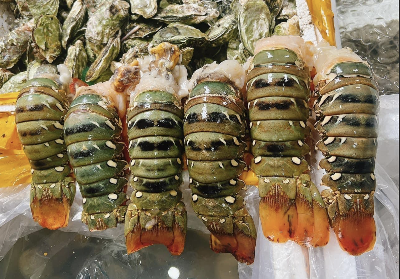 Trao đổi với PV.VietNamNet, chị Trần Thu Hải - đầu mối bán hải sản ở Hai Bà Trưng (Hà Nội) - cho biết, cửa hàng của chị chủ yếu bán các loại cá biển, tôm, mực, cua, ghẹ phục vụ đối tượng khách bình dân. Thế nhưng, khoảng hơn 1 tuần nay, chị nhập về bán thêm đuôi tôm hùm bông size 2-3 đuôi/kg với giá chỉ 480.000 đồng/kg.