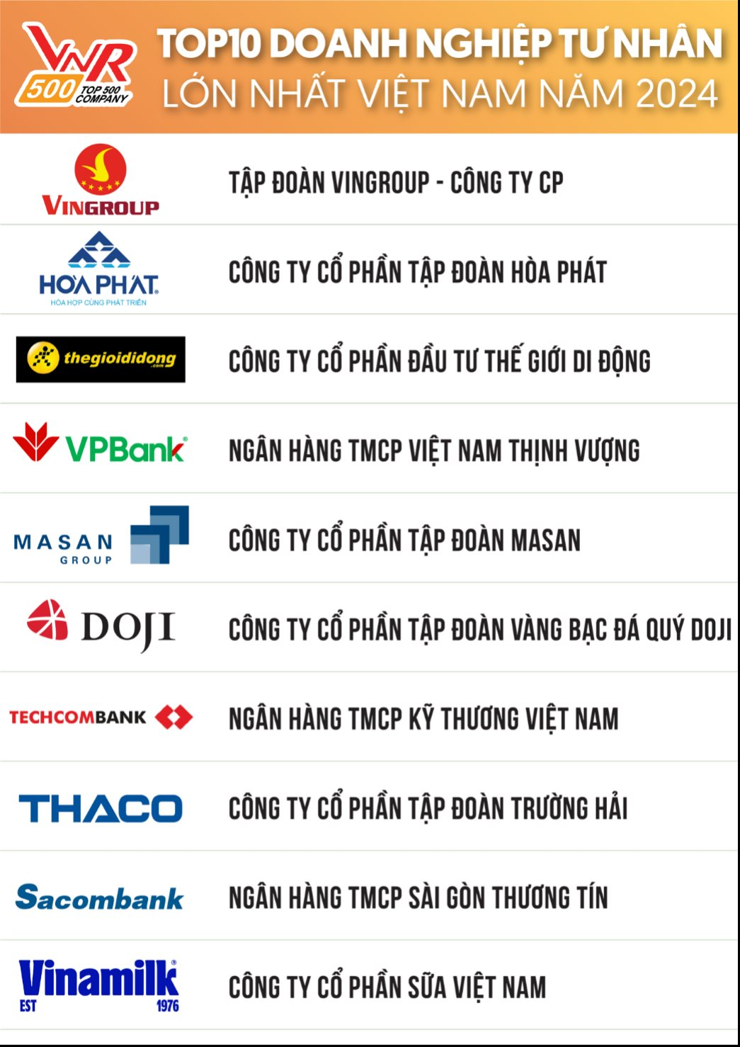 Vietnam Report cũng công bố bảng xếp hạng doanh nghiệp tư nhân lớn nhất Việt Nam. Vị trí top đầu năm nay thuộc về Vingroup, năm ngoái vị trí này thuộc về Hòa Phát.