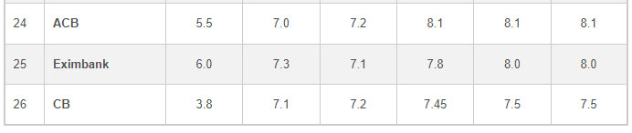 Đáng chú ý, lãi suất ở một số kỳ hạn tại 3 nhà băng gồm OceanBank, CB, và GPBank đang thấp nhất thị trường. Đặc biệt, tại Ngân hàng Xây dựng (CB), lãi suất kỳ hạn 3 tháng chỉ 3,8%/năm.