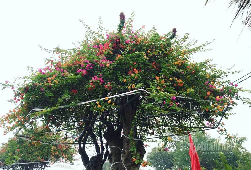 Tại Lễ hội hoa Xuân Quan năm 2020, khách tham quan có dịp chiêm ngưỡng cây hoa giấy ngũ sắc “khủng” của chị Hà Huyền Trang ở thôn 4, xã Xuân Quan (Văn Giang, Hưng Yên). Cây hoa giấy này giá lên đến 450 triệu đồng.