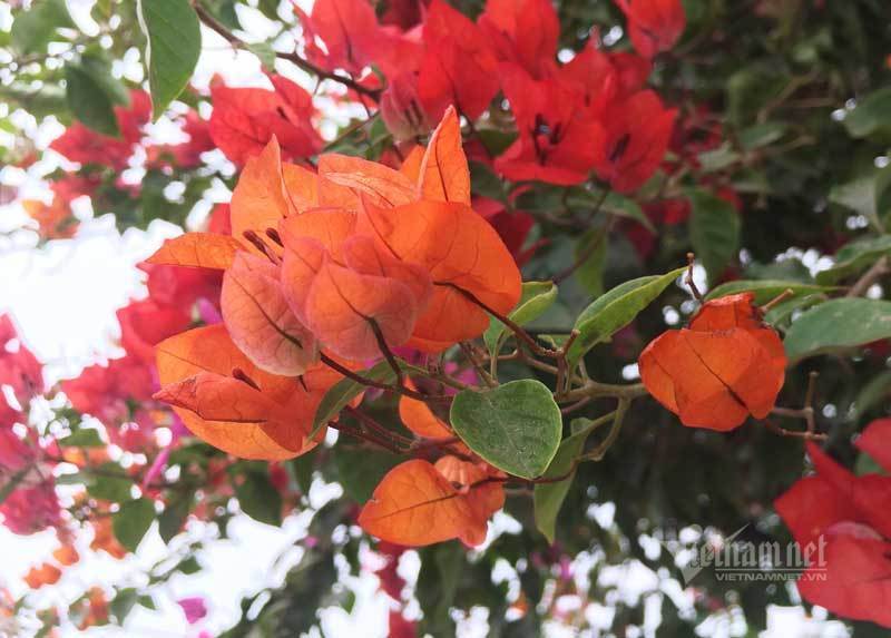 Theo chị Trang, giống hoa giấy ngũ sắc gồm có 5 màu: trắng, cam, đỏ, vàng, hồng rất rực rỡ và bắt mắt, tạo nên nét độc đáo riêng của loài hoa này. Đặc biệt, lượng hoa rất sai, thời gian hoa nở kéo dài đến 1 tháng. Nếu chăm sóc đầy đủ dinh dưỡng, tưới nước, bón phân đều đặn, thì lứa hoa này chưa hết đã đến lứa hoa khác, cảm giác như không bao giờ hết hoa.