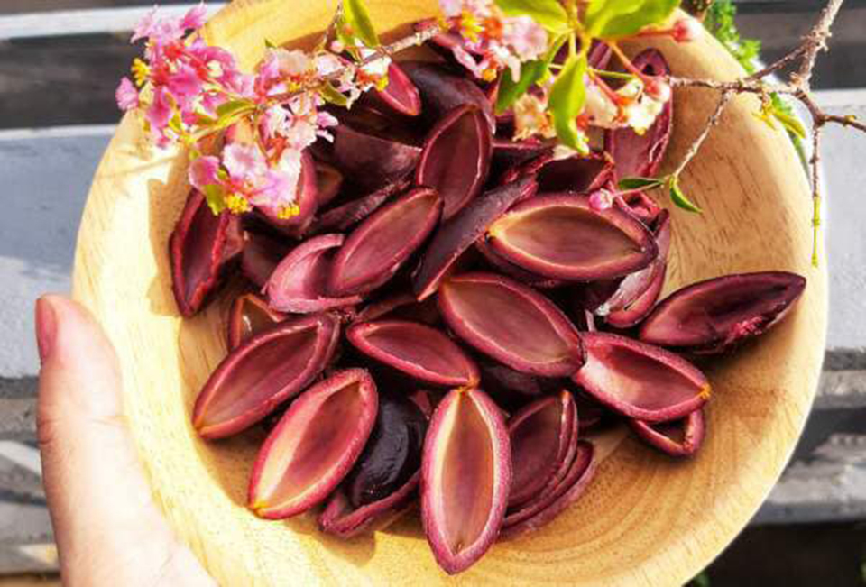 “Một năm, trám nếp đen chỉ có một mùa mùa thu hoạch là mùa thu. Dù được chế biến kiểu gì thì món nào có trám cũng thơm ngon. Khi cho quả trám vào miệng, nhai kỹ sẽ thấy vị bùi, vị ngọt rất riêng. Ở nhà mình, mọi người hay nấu xôi trám đen ăn vừa lạ, lại ngậy mà không ngấy; hoặc mẹ nấu trám nhồi thịt, trám kho cá ăn rất đưa cơm”, chị Ly tấm tắc.