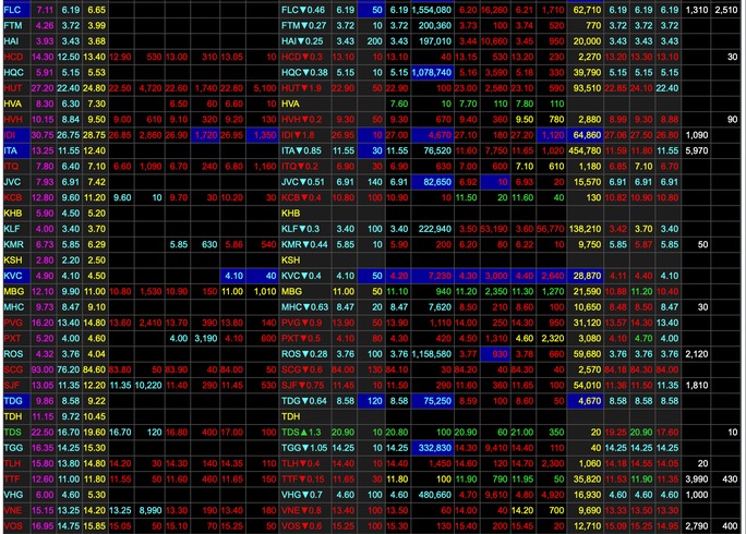 Cổ phiếu họ Trí Việt cũng trong tình trạng tương tự khi TVC chất sàn gần 4 triệu cổ phiếu tại mức giá 11.500 đồng. TVB có hơn 3 triệu cổ phiếu tranh bán ở giá 12.200 đồng và là phiên lao dốc mạnh thứ 5 liên tiếp.