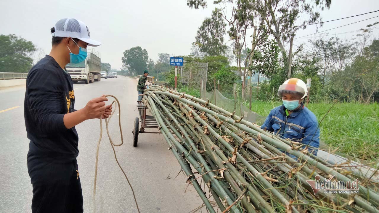 Chị Đoàn Thị Hồng, tiểu thương chở cây tre xuống TP. Hà Tĩnh bán cho người dân làm nêu, cho hay, một cây tre làm nêu khi mua ở trong dân thường với giá 40.000 đồng, chở xuống thành phố nhập lại với với giá 150.000 đồng.