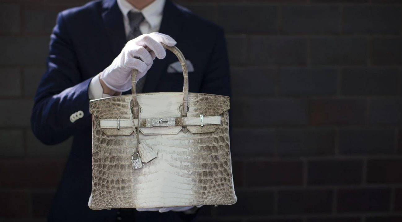 Ví dụ một chiếc túi Hermes Birkin Himalayan Crocodile có phần cứng bằng vàng trắng 18 carat và kim cương đã được bán đấu giá 380.000 USD vào năm 2017.