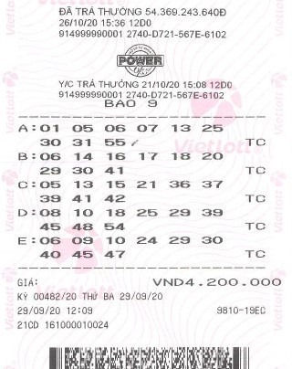 27/10/2020 18:19Trúng 60 tỷ nhờ tấm vé Vietlott 840.000 đồng