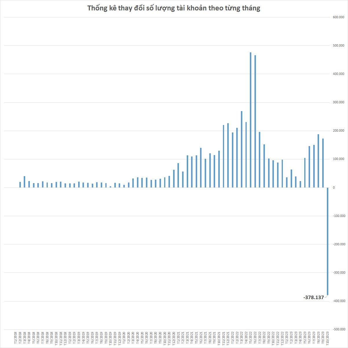 Việc đóng hơn nửa triệu tại khoản của MBS đã khiến tháng 10/2023 ghi nhận tổng số tài khoản trên thị trường giảm xuống, với số giảm là 378.137. Đây là lần đầu tiên hiện tượng này xảy ra.