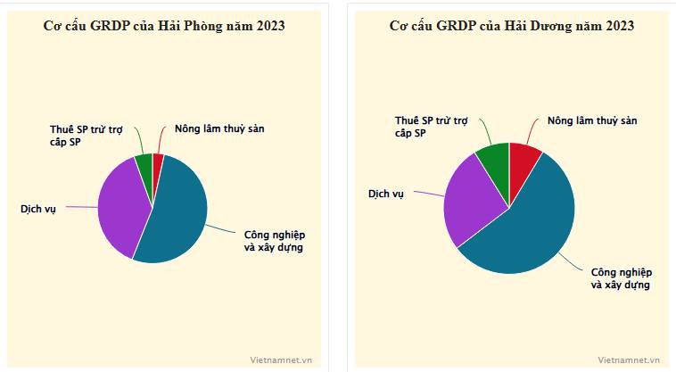 Với Hải Dương, công nghiệp và xây dựng chiếm 56,05%, dịch vụ 26,52% trong cơ cấu GRDP.