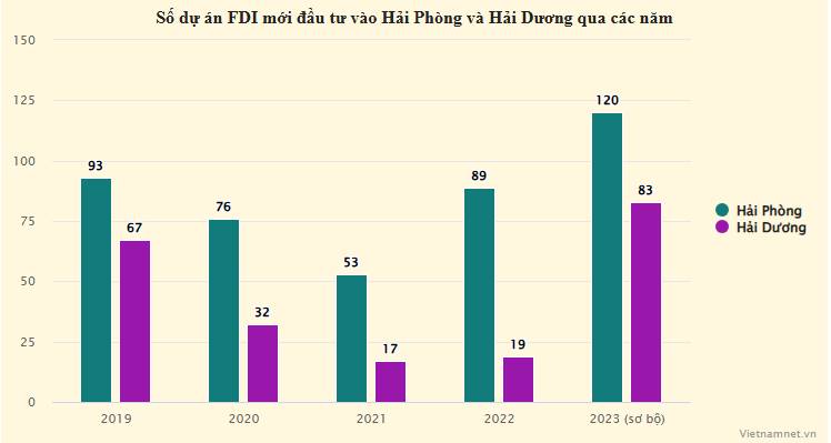 Xét về dự án có vốn đầu tư nước ngoài (FDI), Hải Phòng luôn nằm trong top đầu các địa phương thu hút dòng vốn FDI ở nước ta. Năm 2023, thành phố này thu hút 120 dự án FDI, với số vốn đăng ký hơn 3,62 tỷ USD.