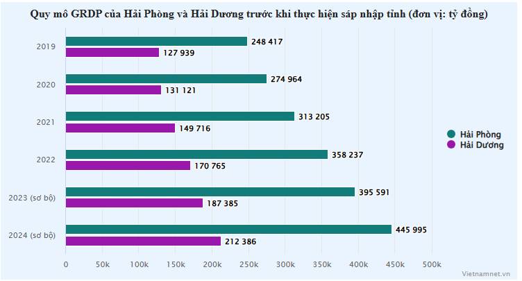 Đáng chú ý, GRDP của Hải Phòng năm 2024 gấp hơn 2 lần con số 212.386 tỷ đồng của Hải Dương.