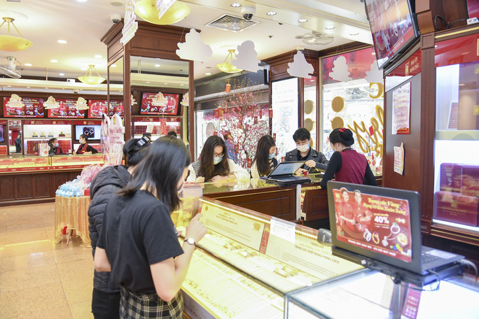 Khảo sát thị trường ở TP HCM, chúng tôi ghi nhận nhiều tiệm bày bán các sản phẩm vàng miếng đúc hình con trâu (Kim Ngưu), Phúc - Lộc - Thọ loại 1 chỉ, giá bán hơn 5,5 triệu đồng/chỉ (đã bao gồm tiền công). Một số chủ tiệm cho hay các sản phẩm này do Công ty Vàng bạc đá quý Sài Gòn (SJC) sản xuất từ trước Tết, tiệm vàng mua lại từ SJC rồi bán cho người dân vào dịp Tết và ngày vía Thần Tài sắp tới.