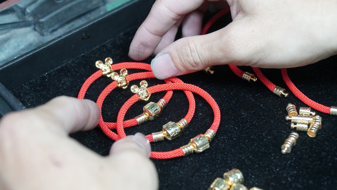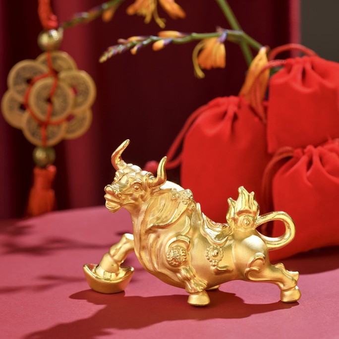 Với màu sắc đại diện cho may mắn, phú quý, Công ty Vàng bạc đá quý Phú Nhuận (PNJ) ra mắt bộ trang sức Kim Ngưu vàng 18k, vòng chạrm linh vật bằng vàng 24k với mỗi khóa chốt được khắc chữ "Lucky" ngụ ý mang lại một năm may mắn, an khang và thuận lợi.