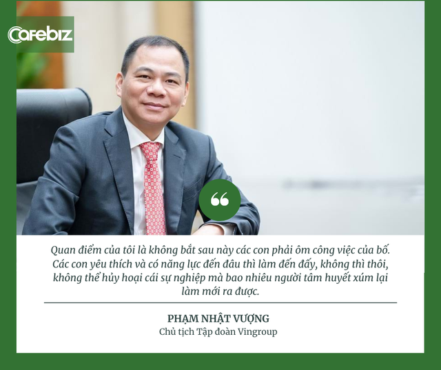 Quan điểm của tôi là không bắt sau này các con phải ôm công việc của bố. Các con yêu thích và có năng lực đến đâu thì làm đến đấy, không thì thôi, không thể hủy hoại cái sự nghiệp mà bao nhiêu người tâm huyết xúm lại làm mới ra được.