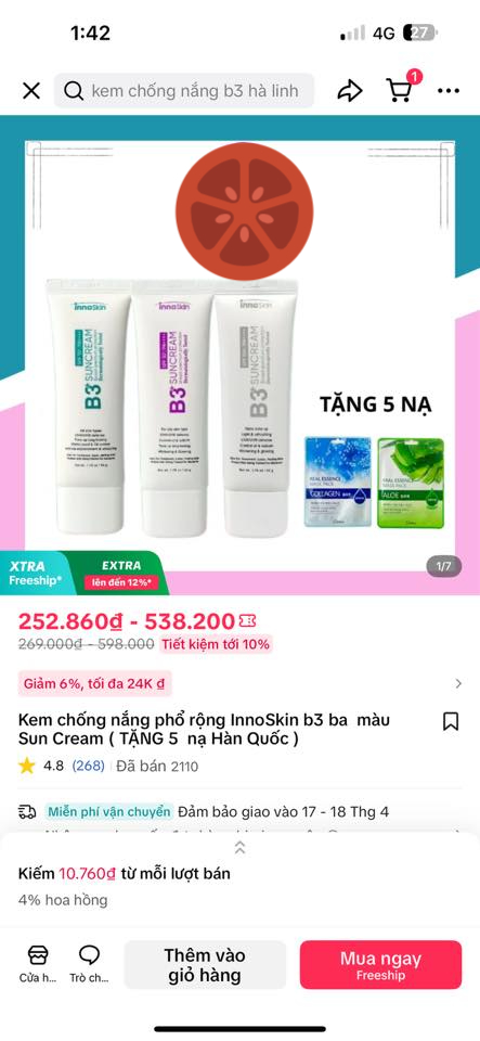 Theo người đăng bài, có thể thấy sản phẩm kem chống nắng InnoSkin B3 được bán phổ biến trên các nền tảng thương mại điện tử với giá dao động chỉ từ 250.000 – 270.000 đồng/tuýp. Ngay cả combo 3 tuýp cũng chỉ rơi vào khoảng 750.000 – 800.000 đồng, thậm chí có nơi bán giá 538.000đ cho combo và tặng kèm 5 mặt nạ Hàn Quốc.